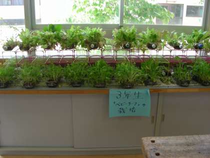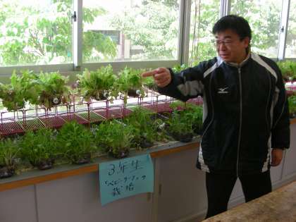 昨年度の三年生が栽培したベビーリーフがよく育っています。