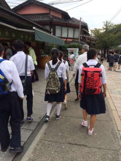 京都駅集合前に、班ごとに昼食をとります。タクシーの運転手さんにアドバイスをもらいながら、どのお店に入るか決めています。