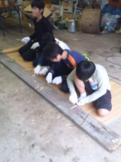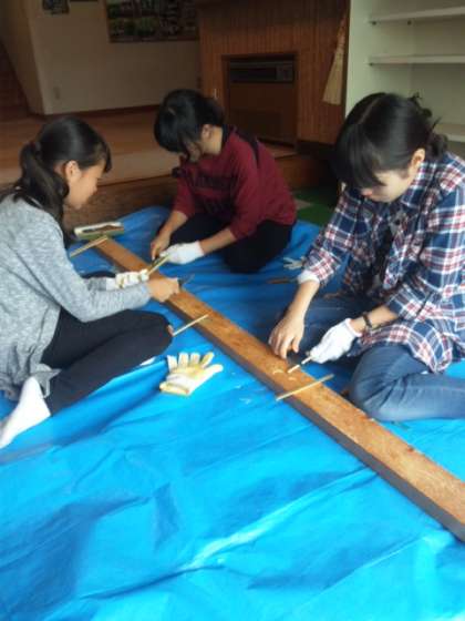 お箸づくりに挑戦中、2組2班と5班。