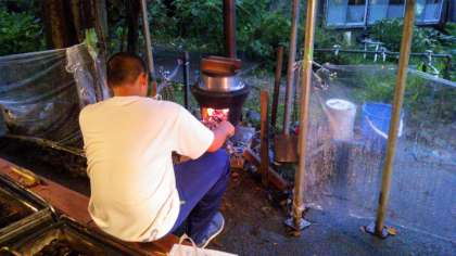 今晩の夕飯は、釜戸で炊いたご飯です。