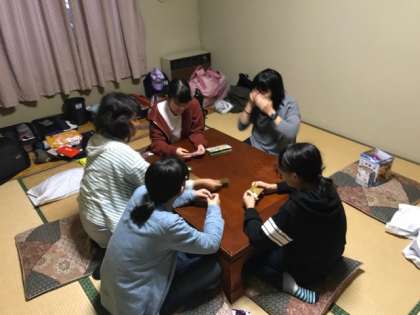 作業の合間です。トランプでダウトをしています。
