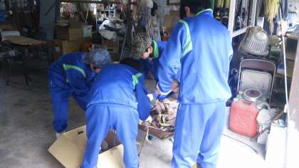 畑で収穫した『さつまいも』と『トウモロコシ』を、箱詰めしています。