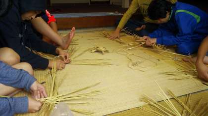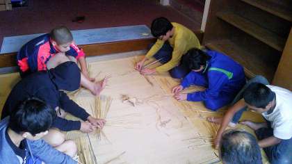 藁で『亀』を作成しています。