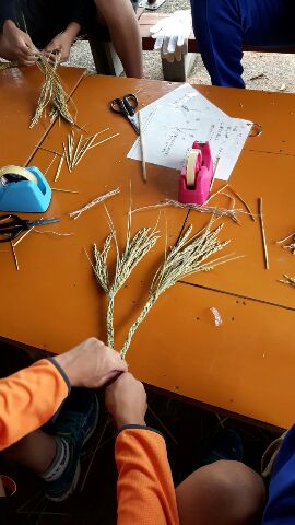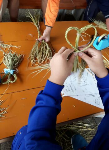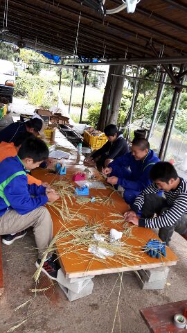4組1班は藁細工のハート型リース作りです。