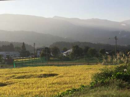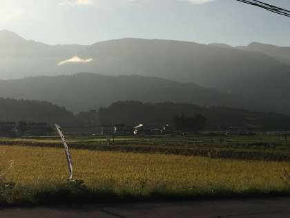 朝もやが山にかかっていて非常に綺麗です。