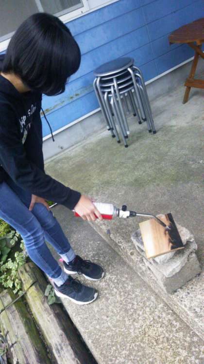 この班は、焼板工作をしています。