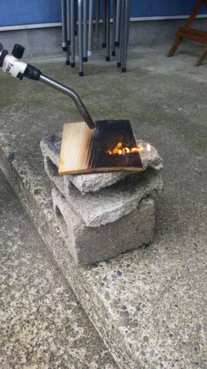 ガスバーナーで木を焼いて→