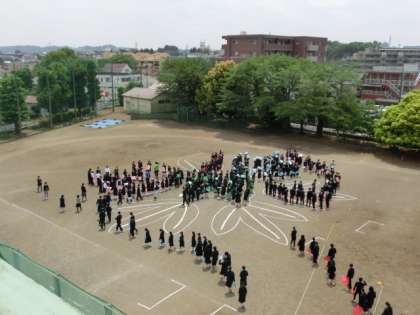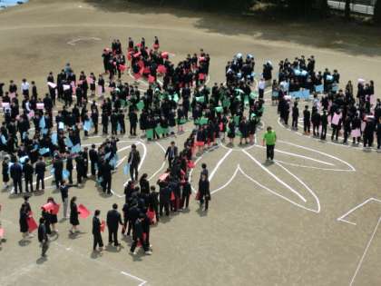 早朝から準備をしていたカメラマンが、指示に従って素早く移動・集合する姿を見て「良い生徒さん達ですね、良い学校ですね」と言ってくれました。最後の3学年の学年写真では、整列を終えた瞬間、思わず「きれい!!」を大きな声をあげながら撮影してくれました。航空写真の写り具合は後日のお楽しみですね。