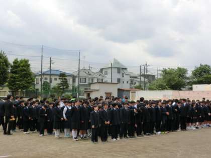 その後いったん場所を離れてから、学年ごとに移動して再度整列し直して、学年写真撮影です。