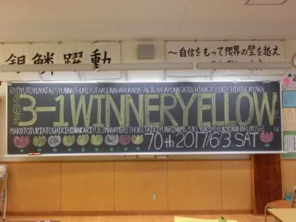 朝、教室をのぞくと、3年生の最後の体育大会に臨む気持ちとクラスの団結力が見られました。