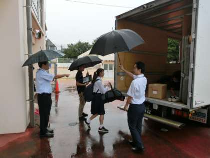 朝方雨が強く降り心配しましたが、登校時には小降りになり、各自の大きな荷物をトラックに詰め込みました。みんなの荷物が一足早く奈良のホテルに向かいます。2泊3日、体調に気をつけて、充実した時間になると良いですね。修学旅行中の生徒の様子は、随時ホームページに掲載いたします。