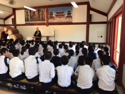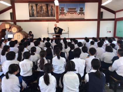 和尚さんの講話を楽しく聞いています。
