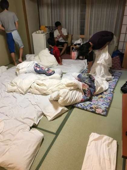 朝ごはんが、部屋食のため→自分達でお布団の上げ下げを行います。