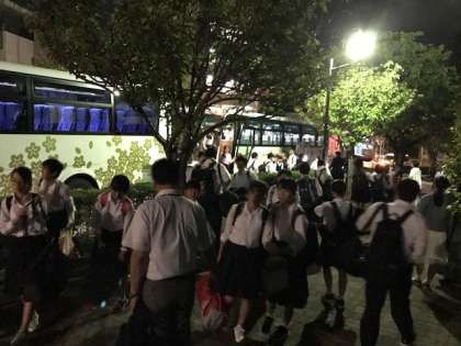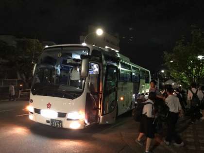 先ほど7時ごろ、上野町公園にバス4台が到着し、3年生が無事に解散致しました。お迎え等ありがとうございました。