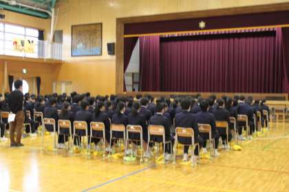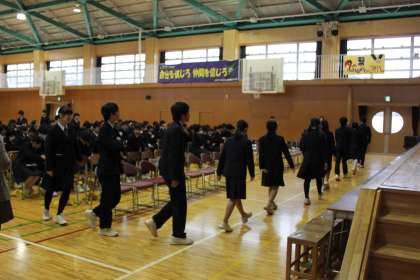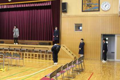 3年生は、今日から体育館での卒業式練習が始まりました。起立、礼のタイミングなど、さすが3年生です。物音ひとつ立てることなく行えていました。素晴らしい卒業式になることを楽しみにしています。