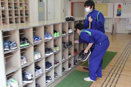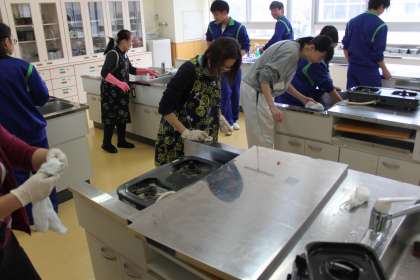 3年間お世話になった教室を感謝の気持ちを込めて掃除しました。調理室は毎年育成指導員の方々も一緒にお手伝いいただいています。和気あいあいと楽しみながら取り組めました。