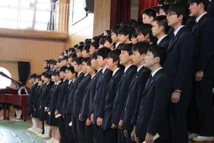 音楽祭での合唱と同様に、1・2年生に、先生たちに、3年生の仲間に、気持ちの伝わる素晴らしい合唱でした。卒業式当日は、保護者、来賓の方々の前でも、感動を伝える合唱が楽しみです。