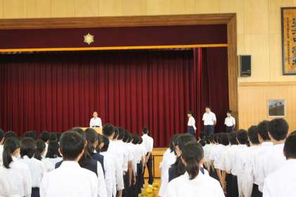 生徒会朝礼、全校朝礼の様子です。