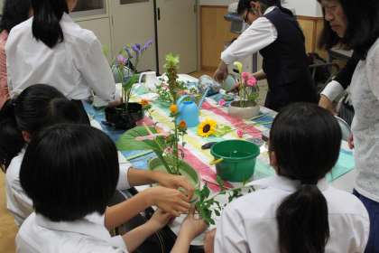 華道教室の様子です。本日は3年生女子が参加です。