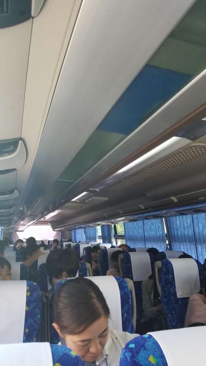 双葉サービスエリアを出発して、一号車(1組)では、バスの中でレクリエーションが始まりました。