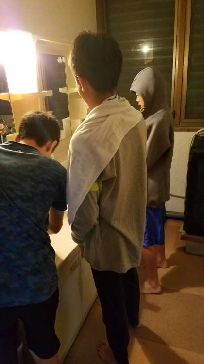 ミーティングも終え、就寝準備中です。