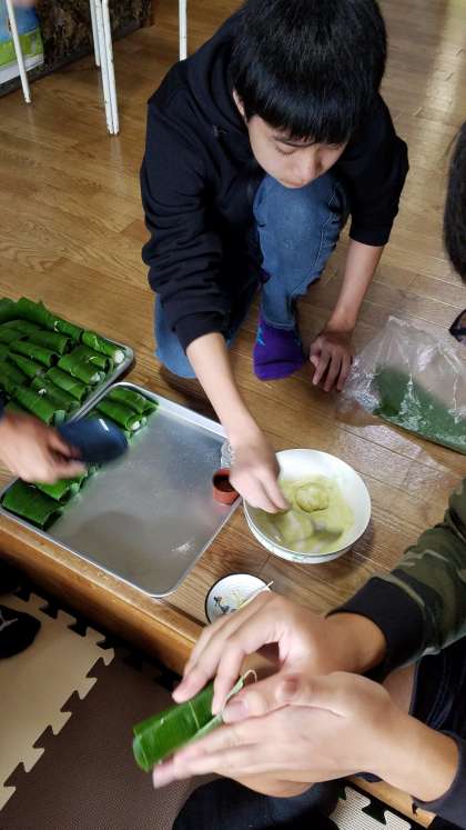 きな粉や笹に巻いています。