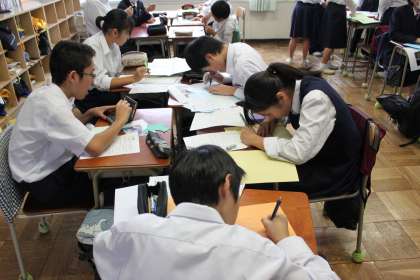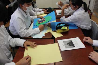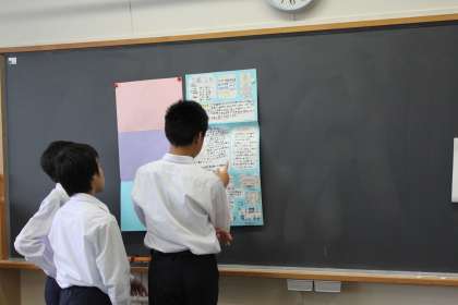 9月に行った、八王子フィールドワークのまとめの学習を行っています。自分たちが調べ、学んだことを、壁新聞にまとめ発表します。