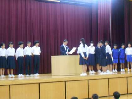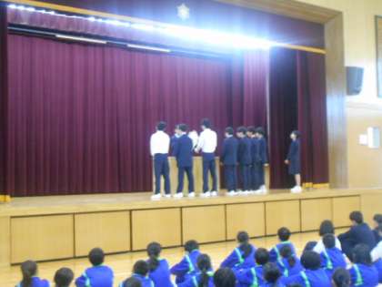陸上部、バドミントン部で優秀の成績を収めましたので表彰を行いました。また、先月本校生徒が考えたバランスの良い献立がランチとして採用され、それに対して感謝状をいただきました。