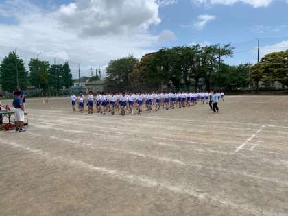 1年生の行進の練習です。全員が揃わなくて苦労してました。
