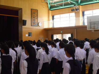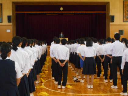 本日、朝礼が行われました。校長先生からは「自分の気持ちを言葉で伝えましょう。」というお話がありました。生活指導主任の先生kらは体育大会での頑張りや普段の生活の大切さ、不審者に関するお話がありました。