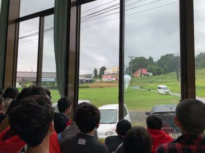 雨降っていたので開校式を室内で行いました。宿の方の紹介と歓迎の花火を打ち上げもらいました。開校式後、各宿に分かれていきました。