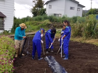 1組6班、農業体験とお花積み。