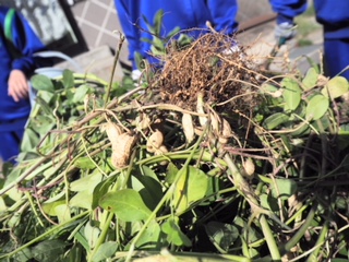 1組7班フォトフレーム作り、3組5班農業体験で落花生を収穫。