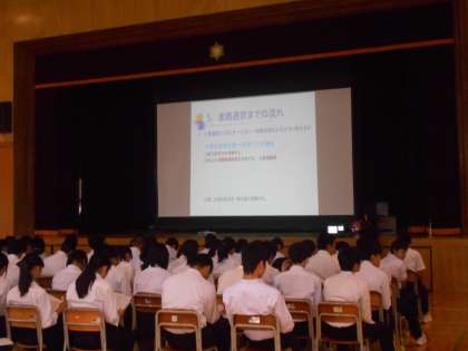 先週末で中間考査が終わり、本日1校時目に進路学習を行いました。受験形態や進路決定までの流れの確認をしました。今週金曜日までに第2回目の進路希望調査を提出することになっています。