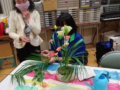 生け花教室ではいつものように平和な時間が流れています。