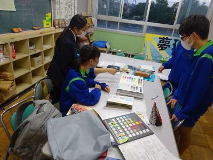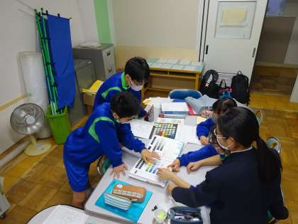 工事中のトイレですが、壁・床・個室の仕切り・便器・その他の場所の色をたくさんのサンプルの中から決めなければいけません。今回その重要な任務を生徒会役員の皆さんにお願いしました。今後何十年にもわたって使用するトイレです。その責任を感じながらも役員の皆さんはしっかりと色を選んでくれました。