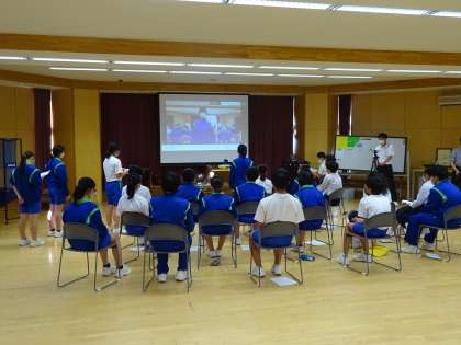 本校で続いているヨコタミドルスクール(以後ヨコタ)との交流はオンラインでの交流会という形で行われました。本校とヨコタとの間でお互いの「志」を英語と日本語で発表し合うというものです。ヨコタの生徒の日本語はとても上手でした。また最後にヨコタの先生から「皆さんの英語がとっても上手でした。」とお褒めの言葉を頂きました。