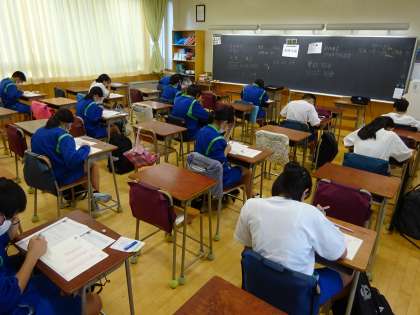 4級、3級、準2級に30人ほどの生徒が挑戦しています。