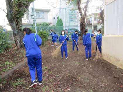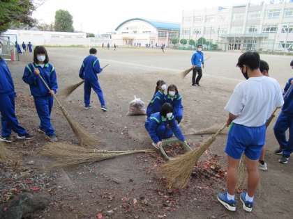 本日放課後,2年生の整美委員と有志で学内の落ち葉掃きを行いました。自分達の学校を自分達できれいにする取り組みを、みんなで協力して行うことができました。