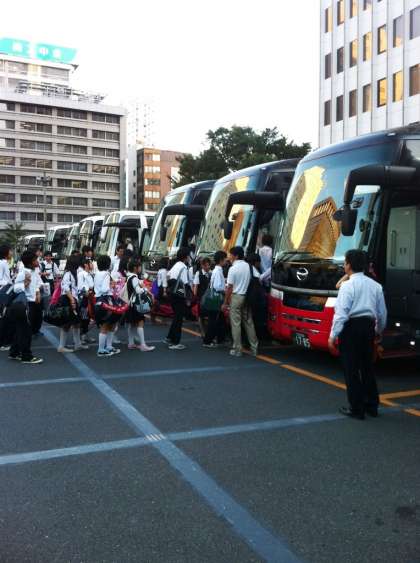 9月15日(木)予定通り東京駅到着。17時30分バス乗車、学校へ向けて出発しました。