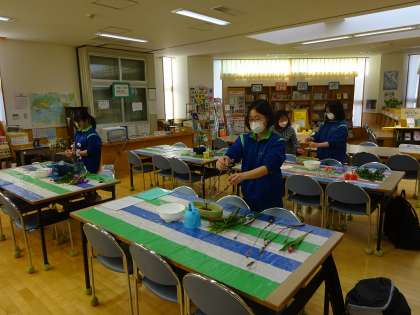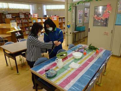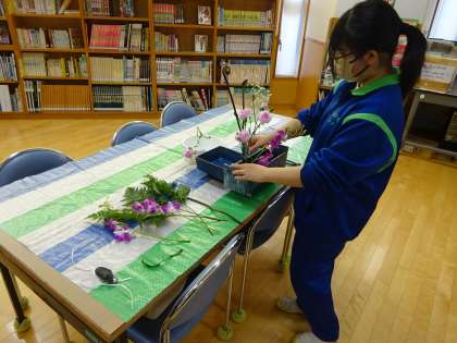 今年度最後の生花教室です。作品は校内各所に飾られます。作品展に合わせて展示されます。ぜひご覧ください。