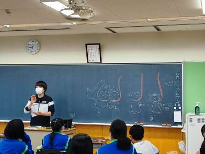 今日の体育大会は、残念ながら雨のため5日(月)に延期になってしまいました。今朝の学活の様子を見にいくと、2年3組に、クラスみんなで作ったてるてる坊主が飾ってありました。黒板にもてるてる坊主の絵が!。今日は午後には雨が上がり、5日へ向けての準備もできると思います。みんなの想いがきっと届きますよ!。