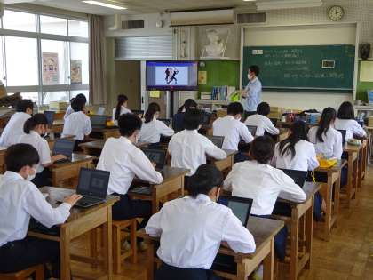 4時間目の3年1組の美術の授業では、生徒それぞれがchromebookを活用して作成したポスター・マークについて発表し、その内容について生徒間で活発に質問や意見を交わしていました。なお期末考査は、すべての教科で実施されます。当日に向けてしっかり計画を立てて毎日の家庭学習に取り組みましょう。
