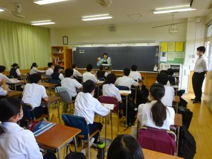 2年2組での朝読書の時間に、学校司書による「ブックトーク」を行いました。