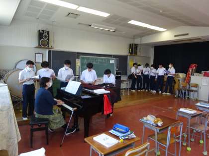 4時間目。音楽室では、3年2組が合唱練習を行っています。