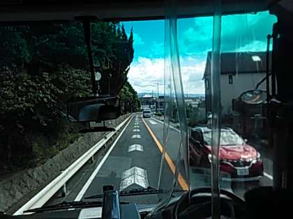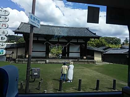 バスからみた東大寺大仏殿と転害門です。