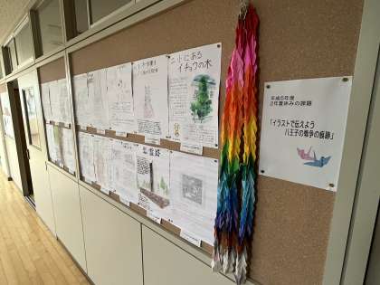 2年社会科の夏休みの課題である「イラストで伝えよう八王子の戦争の痕跡」を北校舎1階に掲示しています。掲示は9月下旬までを予定しています。戦後78年が経過した現代においても、決して忘れてはならない歴史について1つ1つのレポートがよくまとめられています。来校の際は、ぜひご覧になってください。