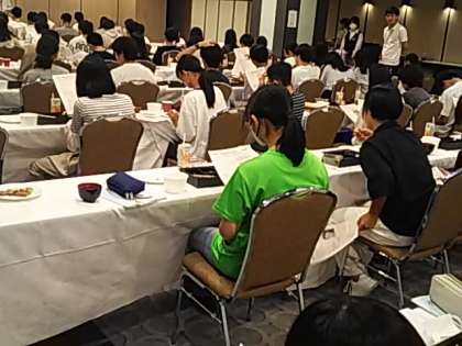 夕食のごちそうさまの前に送る荷物に付ける荷札と明日の行動にむけてのブリントが配られました。早いものであと一日で修学旅行も終わりになります。今日の振り返りを生かして明日もがんばりましょう。