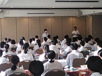 実行委員から昨日の振り返りをしたあと、今日の動きの確認をしました。このあと出発準備です。