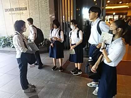 3日目は、京都のスカイガイドさんが各班に1名ずつ付いて班行動します。しっかり挨拶してスタートしました。